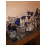 - Bohemian cut to clear cobalt crystal bowls, vases;