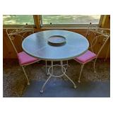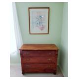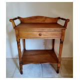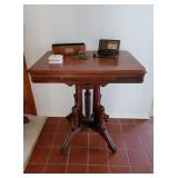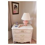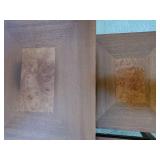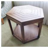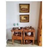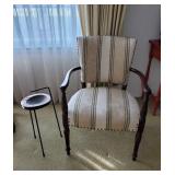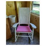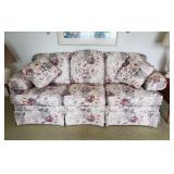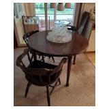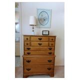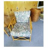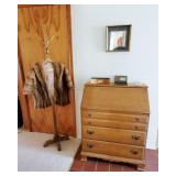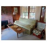 Furniture: Mid-Century Modern Russell Wright Dining Table with Leslie Diamond Two Captains and Two Side Dining Chairs for Conant Ball, Maple china cabinet / hutch with adjustable shelves, Two Thomasville units with drawers and adjustable shelves, Thomasville hexagon table, Vintage Ethan Allen Maple Wood Lazy Susan Round 2-Tier Revolving Side Drum Table, Mid-Century Modern Low Rectangular Wood Coffee Table with Black Insert Danish, Lane Mid-Century Modern Walnut & Burl Wood End Tables, Corduroy sofa, vintage Franklin Furniture chair, Infinite Position Reclining Lift Chair, Floral Sofa by Rowe Furniture, Woodmark Originals yellow chair on coasters, 1960s Vintage Mid-Century Modern Chrome Bar Cart, Slant-Top Secretary Desk, desk, King Bed w/ split box springs, dresser w/ mirror and high boy, queen mattress set, oak dressers and wash stands, many hairs, kitchen table set, rattan patio furniture
