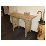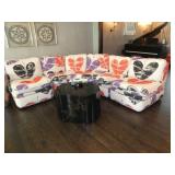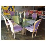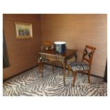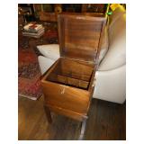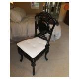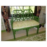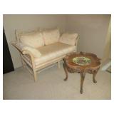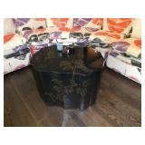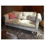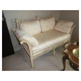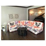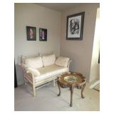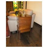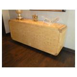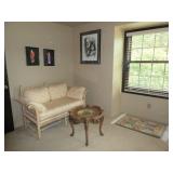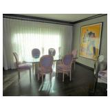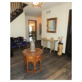 Baker Mid Century 3 piece sectional Baker Asian-style black lacquer chinoiserie coffee table Silverleaf modernist side table with hole Henredon Scene Two Mid Century burled ash credenza Mid Century Karl Springer-style faux goatskin dining table with glass top Set of six oval back dining table with pickled wood frames Charles Frederick Stein black lacquer baby grand piano with bench Vintage mahogany games/dining table with bamboo style legs Set of 4 antique Queen Anne-style mahogany dining chairs Pair custom “Poof” ottomans Vintage Woodard-style dining table with 6 iron arm chairs – 46” round extends to 46” x 64” oval w/ 1 leaf Pair Roche Bobois whipstitched leather sofas Jansen-style chrome/brass glass coffee table Antique mahogany wine cellarette Vintage/antique oak barley twist lectern/book stand Custom French style settee, upholstered in cobalt velvet with butterflies Asian Altar table with antiqued finish Antique style mahogany 3 drawer demilune with marble top Moroccan bone inlaid rosewood octagon table Asian-inspired red lacquer pedestal Mid Century velvet rolled arm sofa w/ walnut base Vintage oak games table with drawers Pair mahogany chairs with gold medallion and zebra fabric seats McGuire modern rattan lounge chair and ottoman in zebra pattern upholstery Jasper Cabinet Company mahogany slant-front desk with serpentine front Mount Airy Mid Century 9 drawer walnut/brass dresser and nightstand Bernhardt spindle settee French style vintage white ash dresser with mirror, tall chest, full bed and 2 nightstands Brass/mahogany tray table Baker curved back lounge chair w/ mahogany base/legs ART