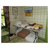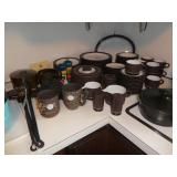 Vintage Serv wood fondue set Vintage mid century enamel swirl cookware Vintage copper pots Books Golf Clubs Ping Pong table Folding picnic table Kitchenware Grill AND MUCH MORE!
