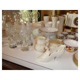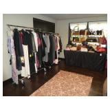Porcelain figurine collection including German, Meissen, Royal Vienna, Dresden, & Sitzendorf Italian ceramic cherub bowl Vintage Murano gilt filigree painted glass center pedestal bowl & pair trumpet vases Luciana Roselli etched glass plate Chinese porcelain plates and vases Hand cut crystal bowl and vase Chinese porcelain jardiniere Pukeberg mirror Vintage Meissen porcelain inkwell set Waterford herringbone crystal lamp Vintage Mason’s porcelain ginger jar Pair of vintage figural porcelain lamps Waterford frame Lladro & Royal Copenhagen figurines Lancaster Vitramic Mike Hornsea England dinnerware Vintage Plymouth stoneware, England Ceramic zebra cookie jar Vintage etched barware Rosenthal “Maria” dinnerware George Briard chafing dish Noritake Lenox Beleek Dansk Nambe Markkum pottery Frankoma pottery Syracuse pottery WOMEN’S BETTER/DESIGNER CLOTHING