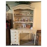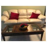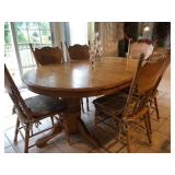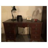 FURNITURE - oak double pedestal dining table with 3 large leaves and 6 chairs, leather sofa, loveseat and ottoman, mission style end table, coffee table, king size bed, French provincial style hutch and matching twin bed, twin size hospital bed, kneehole desk, sofa with 2 end recliners, several small stands…