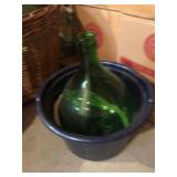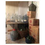 Old Italy demijohn green glass bottle, 5 gallon glass jugs and several 1 gallon jugs…