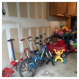 This house is full of furniture and more including, Dining Tables King and Queen size beds Washer and Dryer Refridgerator Sectional Sofa 4 other sofas Small Settee Chairs Desks Toys Linens Some children's clothes and costumes Art kitchen including Kitchen Aid stand mixer, China, pots and pans, Food processor, flatware garage has bikes and Scooters,Outdoor chairs, wrought Iron patio furniture, kids riding toys, tandem stroller, strollers,baby items Garage Apartment includes china, beds, sofa,small table and chairs Exercise Equipment, camping equipment |