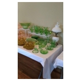 FOR THE HEALTH AND SAFETY OF ALL, PLEASE WEAR A MASK WHILE YOU ARE ON THE PROPERTY! WE WILL BE LIMITING CUSTOMERS TO 25 AT A TIME!! We are pleased to welcome you to this amazing estate sale in Hitchcock! This well-maintained country-chic, two-story home with its welcoming wrap-around porch, is an American classic and is also for sale! This sale features a variety of vintage items: Vintage furniture including three accent chairs and ottomans, Mid-century modern dresser and mirror, French Provincial white bedroom set that includes full size headboard, footboard, dresser and mirror, and vanity with mirror and fabric upholstered padded seat; two twin amber maple headboards and footboards with matching nightstand, vanity and chair, and chest of drawers; kitchen cupboard, maple tea cart, sofa, accent table, three windsor wooden chairs, three children's rockers; small vintage buffet/sideboard, bookshelf, small cabinet, vintage piano stool, Elgin Rotary sewing machine in cabinet, china including Haviland (France), Noritake (Japan), Royal Wentworth (Japan), Williams-Sonoma; stemware and crystal, Depression glassware (amber, yellow, green, pink and uranium green) including but not limited to, the following patterns: American Sweetheart, Block Optic, Charm, Doric, Madrid, Mayfair/Open Rose, Patrician Spoke, Sharon/Cabbage Rose, Windsor Diamond, etc.; kitchen items: vintage utensils, pots and pans including Magnalite, cast iron and Farberware, electric skillets, bakeware, cutlery and silverware sets, serveware; kerosene lanterns including an Aladdin red beehive lantern with Aladdin mantle and various other lanterns, vintage wall pockets and decorator plates, vintage Oliver bat-wing typewriter, framed art, lamps, Christmas decor, washer and dryer, and much more. Karacostas Estate Sale Services, 409-771-3544.