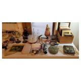 Costume Jewelry MCM Tulip Table & 4 wire chairs Gardening tools Jim Beam Decanter bottles full Antique cherry dresser plus other misc. pieces General Household |