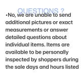 ENTRY WILL ONLY BE PERMITTED DURING SALE DAYS AND HOURS.