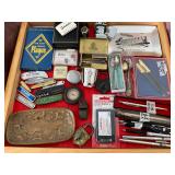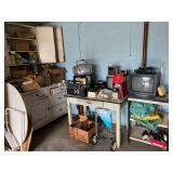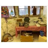 Unusual Mid Century Slant Front Desk, Mid Century Jerry Kitman Dining Room Buffet, China Closet, Table w/Pads, Leaves & Chairs, American Martinsville Full Bed w/Bookcase Headboard, Dresser w/Mirror & Chest, Cherry Roll Top Desk, Mid Century Metal Gossip Chair, Sofas, Pair Velour Swivel Rockers, Recliners, Pantry Cupboard, Knee Hole Desk, Retro Card Table w/Chairs, Coffee & End Tables, Assorted Accent Tables, Retro Square Stacking Snack Tables, Wrought Iron Plant Stand, Men’s Valet, Table, Floor Lamps & Very Unusual Large Mid Century Double Goose Neck Lamp w/Glass Base & Brass Gallery, Pair Green Ceramic & Wire Mid Century Table Lamps, Framed Art Work, Westmoreland Purple Slag Vase, (2) Pieces Roseville (1) Piece Hull – All As Is, Oriental Theme Figurines, Fans, Jade Egg, Lacquered Photo Album, etc., Corning Ware Covered Baking Dish Country Festival – Sealed In Box, Cup/Saucers, Vintage Round Lazy Susan w/Hand Painted Mushrooms, Mid Century Stainless Flatware & Other Assorted Pieces, Miscellaneous Airline Flatware, Set Airline Shot Glasses, Mid Century Cocktail Shaker w/Flying Geese Pattern, Yellow Fiesta Disc Juice Pitcher, Vintage Fire King Casseroles, Pair Mid Century Salt & Pepper’s, (3) Canister Sets Including Pfaltzgraff, Aluminum & Retro Butterfly, Melmac Dishes, Tons Chrome Ware, Newer Cut Crystal Glassware Including Candy Dishes, Decorative Bowls, Vases, etc., Stemware – Some NIB, Small Appliances, Men’s & Ladies Costume Jewelry & Watches Including Ladies Quartz w/Diamond Accent – NIB, Many Jewelry Boxes, Rattle Snake Purse, Vintage Cut Glass Perfume Atomizer, Spritzes & Sprays, Mirrored Dresser Tray, Men’s Clothing (L-XL) & Accessories Including New In Package Boxers, Socks T-Shirts, Belts & Neck Ties, (Shoes 10.5 & 11), Pocket Knife Collection, Collectible Pens & Mechanical Pencils, Linens Including Vintage Damask & Lace Table Cloths In Original Boxes, 50’s Cotton Table Cloths & T-Towels, Retro Floral Bed Sheets In Original Packages, Army Green Wool Blankets, etc., Newer Bed Linens, Afghans, Cabinet Sewing Machine, Sewing Notions, Buttons, Fabric, Religious Items, Electronics Including (3) Camcorders, Realistic Turn Table, Aiwa Stereo, etc., Cameras – Some In Box, Books, Vintage Cookbooks Including Bakeoff, CD’s, Albums & Large Collection of 78’s, Office Supplies, Games & Toys – Some Fisher Price, (2) Telescopes, US Steel & Edgar Thompson Memorabilia Including Vintage Books, Mugs, Wendell August Forge Plates, etc., (2) Vintage Pad Locks w/Keys, Red Push Petal Metal Waste Paper Basket, Lighters, Wood Advertising Crate, Vintage Razor In Metal Case, Pie Traynor Autographed Baseball Bat, (4) Antique Meat Cleavers, Sirocco Boy Scout Plaque, Wood Nail Keg, Advertising Tape Measure, Halloween Decor & Blow Mold, Christmas Including Vintage Bulbs & Hard Plastic Santa King, Wheel Chair, Many Packages Adult Briefs & Other Home Health Care Items, Wrought Iron Patio Furniture, Lawn/Garden, Pots & Planters, DP Fit For Life Air Gometer Stationary Bike, Vintage Huffy Stationary Exercise Bike, Wood Folding Chairs, Plastic & Metal Shelving Units, (3) Metal Four Drawer File Cabinets, Multi Drawer Metal Cabinet, Antique McCaskey Register Combination Safe, Tool Room Full Of Power & Hand Tools – Mostly Vintage, Vise, Snap On Sockets, Tool Boxes, Large Assortment Of Hardware, Military Ammo Box |