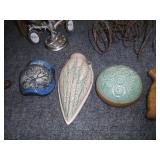 Vintage Cast Iron Miniatures, Jewelry, Tools, Halloween Items, Storage Totes Collectable Glassware