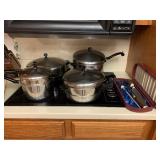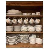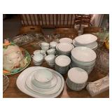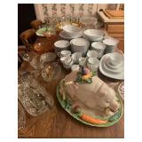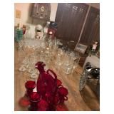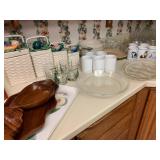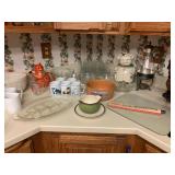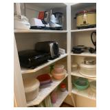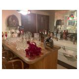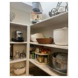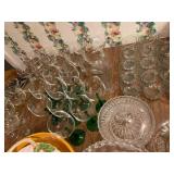KITCHEN AND BAR: Utensils, accessories, small appliances, knives, pots and pans, China Noritake “Berries-n-such”, China Noritake White brook, glasses, stemware, bar glasses, Keurig brewer, crystal, tea set, Riedel glasses, ++