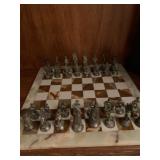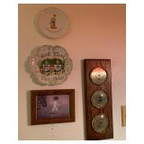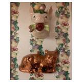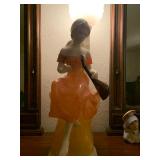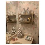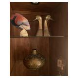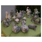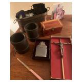 SMALLS AND COLLECTIBLES: Jewelry, cat collectibles, sterling silverware set, dice cups, neat chess set, artwork plates by W.L. George, bar signs, beautiful Italian carved alabaster lamp, religious items, Cloisonne pieces, figurines, book ends, plus.