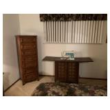 MISCELLANEOUS: Christmas, office, luggage, sewing machine in table (Singer Touch-n-sew Model 700), Philco Radio, TVs, nice balance scale, etc.