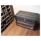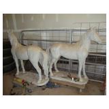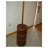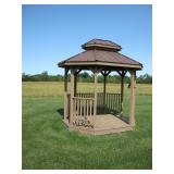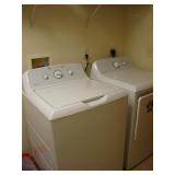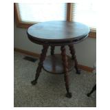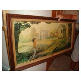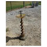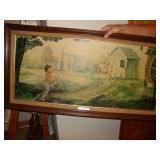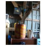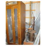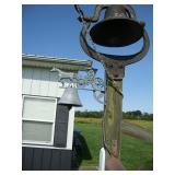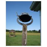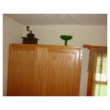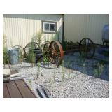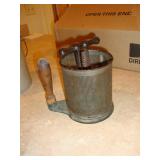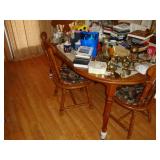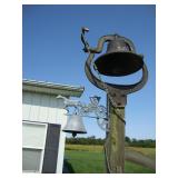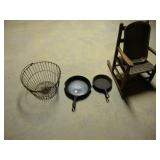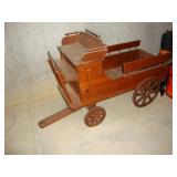 oak table, w/claw and ball feet. large computer desk. wall mount cabinet w/cast car display. several cast iron toys. advertising tins. small cast juicer. cow bells. Hotpoint like new washer and dryer. several brass items. claw footed organ stool. wooden butter churn. 3 pc maple bedroom suite, 12 gal crock. wooden decorative wagon. Radio Flyer wagon. print signed James Comer. refrigerator. chest freezer. yard gazebo. cast iron match holder. sleigh bells. Other small collectables, Cast iron skillets.