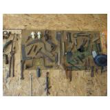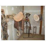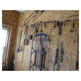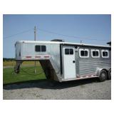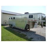 TOOLS: new Hilti guns, 20 boxes of drywall screws. iron wheels. posthole digger. drum carts. commercial SS upright freezer. Large tarp. 2004 Feathelite 3 horse slant trailer w/living quarters completely redone. Electric awnings. Nice