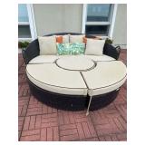 No one will be admitted without a mask. Please bring your own shopping bags Thank you! Waterfront home offers Schnadig dining room table, 8 chairs & server, pair of beautiful carved curios, pair of twin beds, armoires, bamboo chairs, wrought iron and glass coffee table, wicker desk, counter stools, round chrome table, wall art, lots of decorative accent pieces, outdoor table & chairs, round outdoor sectional sofa, fire pit, Raleigh bike, garden tools, exercise bike, Mikasa Midnight Gold china, kitware, bric-a-brac & lots of boxes to be opened!! |
