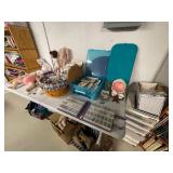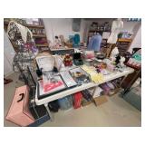 Large jewelry case with mirror, assorted rings, necklaces, sewing instruments, crystal, glass chess set, women’s jewelry, beaded necklaces, flip phones, GPS navigation, Minolta camera Living room Floral wingback armchairs, Ethan Allen one drawer and table, watch box with mirror, assorted watches, purple glass rectangular vase,Wood dining room set with six chairs leafs, decorative body form assorted, assorted oil lamps, decorative sewing wood boxes,Large would China cabinet, small hallway table, green floral tea pot, framed painting of woman,Framed painting of children, framed painting of flowers, decorative floral tea cups with saucers, wall shelf, fake potted flowers, ivy, assorted old phones, Motorola FR 50 walkie-talkies, Magellan RoadMate 2035, grapes, fireplace accessories and grate, decorative hall mirror small, singer featherweight 221 Master Bedroom Pair of beige arm chairs, framed flowers, framed pictures of women, framed pictures of blouses, assorted purses,Stone top three drawer and table, Metal candle stands, snowman brick, fake flowers in purple vase, no footstool, wooden side table round, what did bedside table one drawer one cabinet, metal lamps, purple stain glass lamp, decorative pillows,Collectible tiny books with charm, decorative body form stands, decorative wicker shoe, assorted clothes, assorted hats, lavender body collection kit,Sort of linens, assorted shoes, assorted coloring books, assorted bathroom products, hair curlers, hair dryer, purple bathroom deck decoration set, mini trashcan, toilet paper holder, tubing, Bedroom Wood shelving in boxes, assorted linens and bags, pillows, assorted boxes and trunks, VCR movies, books, framed pictures of ships, GVCNHR stereo precision 19 head, giant doll, other assorted dolls, assorted gloves, bissell swift sweep tiny decorative teapots, bird, ornate display shelves mirror, binders, assorted tech, large comic sunglasses, Front Room Wicker mailbox, tiny wood chair, basic wood shelving, assorted wicker baskets, curved corner chair small, metal shelving, cookbooks, rainbow organizer, small metal chairs ornate, wire metal rolling island, brown vase, assorted office supplies, decorative trays, Lennox sound digital compact disc player digital filter micro presser programmable memory play Kitchen Assorted floral dish soap, purple dishes, Pyrex measuring cups, Quilted cups, glass display dish, festive dishes, assorted wine glasses, glass champagne glasses, bumpy cake display case glass, Assorted ceramic pictures, glass pitcher, holder scale, glass tumblers, glass pot with lid, purple containers, glass punch bowl with glasses and ladle, Laundry Canned food, Ziploc bags, Anson cleaner, rainbow is Siri‘s model E2 cleaning system vacuum with Aquamate attachments Garage Longaberger baskets, longaberger dish ware weed killer, yard tools, patio set Basement Blue sofa, three tiered purple storage shelf, brocade upholstered chair and rocker in the style of Eastlake, longer Berger ceramics, green lamp, Canon printer, Epson XP for 10, three dimensional puzzle, stationary bike Vito master, Magnavox stereo turntable, miscellaneous Christmas, vintage license plates, tools, wrenches, files, saw, jigsaw, bench grinder, craftsman drill, power craft tool storage, vintage folding chairs, tea cups and tea pots, vintage books, records, gone with the wind on vinyl, Johnny cash on vinyl, even heat kiln model 1210, huge collection of Christmas ornaments, garland, Christmas lights, Christmas decoration, wreaths, stock pot, vintage Tupperware, elite popcorn maker, Hamilton Beach mixer, power pressure cooker XL, 6 quart power pressure cooker, plant stands, various tools Basement - Craft room Sound supplies, sewing patterns, red, scrap fabric, rolls of fabric, interfacing, Taraway fabric, longer burger baskets, tons of crafting supplies, bedding, standard antique sewing machine, Husqvarna Viking designer topaz 50, Husqvarna Viking designer SE, brother PR 600-II sewing and rotary machine, craft storage with drawers, colorful paper, quilts, dolls, doll making supplies, dress form, barrister shelf, porcelain dolls, sewing patterns, huge collection of sewing books, desks, |