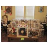 Large Estate Sale. Antique Oak curio cabinet, Sofa bed, wicker loveseat and coffee table, dining room table and hutch, large collection of Madame Alexander Dolls, Carnival Glass, and Germany Beer Steins. Two sets of Noritake China, two sets of silverplate flatware, brass bed, oak bed, large stand up jewelry chest, vanity with stool, 3 desks with chairs, pine sofa table, framed quilts, upright freezer, small refrigerator, red washer and dryer, file cabinets, artwork, beanie babies, books, albums and 45’s and 78’s, cameras, hand tools, garden tools, industrial cleaning supplies, antique coins and so much more. |