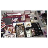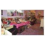 This sale includes: Hundreds and hundreds of pieces of jewelry including vintage, modern, new in the boxes and never worn, and some gently used - Sterling, Gold over silver, Costume, hundreds of rings with stones and without, chunky, bracelets with stones and without, necklaces, pearls, pendants, chains, earrings, sets of necklaces and earrings, watches new in the box and more. Jewelry Boxes galore and 6 Jewelry Armoires in perfect condition Perfume collections includes over a couple hundred mini perfumes displayed in cases, on a vanity tray, and more displays available, sets of perfumes by Estee and more Collection of Perfume bottles of all sizes Hundreds of Dolls including original 1984 Cabbage Patch dolls, special Barbies including Gone with the Wind Barbies Rhett, Scarlet, Mammy, and the rest of the cast, Dolly Parton, Cher, Rustie Full Size Dolls 4 feet tall dressed in gorgeous gowns and hats, Seymore Mann, and more,and more, miniature dolls, artist dolls, hand made, some new in the box, and any type of doll you could imagine. all in perfect condition. Stuffed animals, bears, dogs and more including the Taco Bell dog Collection of shoes, colored bottles, large and small, miniature collection of china pieces including Royal Albert Huge Collection of Dale Earnhart including T-Shirts, Books, figures, Collection of Nascar Die Cast Cars, match box cars, and Nascar collectibles including a ceiling light cover Kodak, 35mm cameras, Fujika binoculars Pennant collection Group of German Steins, German Punch Bowl and mugs, and more Vintage Xmas including wood figures, glasses, lights, Elf on the Shelf, and more Cd's, boxes of novels, books, collection of vintage electronics including tape recorders, tv, timing lights, testing tools, record player, Vintage Typewriters and adding machines including a Smith Corona and an Underwood Vintage figures including angels, children, miniature pieces of household items, Hummel apothecary Set, Collection of old tins, bottles, powders including hygienic powder, all full. Avon collectibles, some still full Perfume collections includes over a couple hundred mini perfumes displayed in cases, on a vanity tray, and more displays available, sets of perfumes by Estee and more Collection of Perfume bottles of all sizes Hundreds of Dolls including original Cabbage Patch dolls, special Barbies including Gone with the Wind Barbies Rhett, Scarlet, Mammy, and the rest of the cast, Dolly Parton, Cher, Full Size Dolls 4 feet tall dressed in gorgeous gowns, and more, miniature dolls, artist dolls, hand made, some new in the box, and any type of doll you could imagine. all in perfect condition. Stuffed animals, bears, dogs and more including the Taco Bell dog Collection of shoes, colored bottles, large and small, miniature collection of china pieces including Royal Albert Huge Collection of Dale Earnhart including T-Shirts, Books, figures, Vintage Medicine tins, bottles, Boxes including Rexall, Mavis powder, Hai Karate, Bisoldol, Hygienic powder, White Clover Salve, Watkins Inhalant, Venture, Vintage Kiss Me Bobble Heads Bundy Trombone Perfume and Makeup Gift sets including Montiel, Ultima, Estee Lauder, and more
