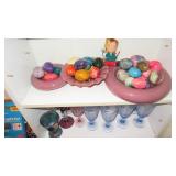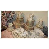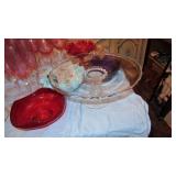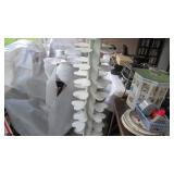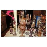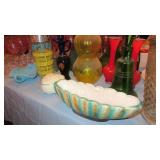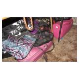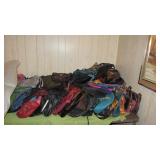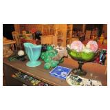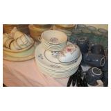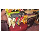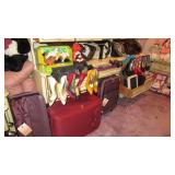 Vintage Radio tubes, vintage aviator sunglasses, Mid-Century serving pieces including chip and dips, snack sets, cups and plates, chocolate set with pot and cups, gold rocks glasses, ice bucket and matching glasses, Colored glass stem ware, sets of colored stemware still in the boxes, Murano bowl, depression glass, Complete sets of china including Fiesta Like Mikassa in Purple, and a Blue and White set of Noritake, Mid-Century Rose Pattern set. Ladies clothing size Large - XL, lots new with the tags, some still in the original wrap, shoes and boots new or hardly worn, size 8 1/2,, over a couple hundred purses, bags, wallets new or nearly new, 10 Matched Sets of luggage with carry on, and small, medium and large suitcases, new never used. 1960's Vintage Lamps, pots and more Masks required, sanitizer at the door, limited numbers, NO large Bags, bring bags & wrap, Do not park on the grass. Cash or Credit Cards, No Presales, No phone prices