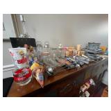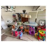 Popeye collectibles, jewelry, cell phones, collectible farmall and hotrod knives, earrings, necklaces, bulova watch, pins Living room White upholstered armchair and sofa, rustic industrial coffee table, small blue end table, stone motif buffet,collection of vintage ice cream memorabilia, vintage ice cream scoops, vintage Dairy Queen, sofa table with drawers, rustic lantern style table lamp, vintage popeye collectibles, vintage Gumby figures, sofa pillows, books, James Patterson novels, knickknacks, vintage tonka metal pickup truck with horse trailer, vintage tonka metal trailers, baskets, leather cowboy hat, DVDs, cameras and accessories, Minolta cameras, area rug, entryway bench with storage, ladder style shelf, blown amber glass vase, faux houseplants, table lamps, small white sofa table with drawers, wrought iron style side table, figurines, portable DVD player, toys, large black frame wall mirror, wall art, large wall print, Armani figurine, Lladro figurines Kitchen Assorted Pyrex bowls with plastic lids, stockpot, Cuisinart and T-Fal pots and pans, juice pitcher, pampered chef measuring cup, Assorted utensils, napkin holder, salt and pepper shakers, utensil holder, silverware set, quesadilla maker, assorted plastic ware, Miscellaneous silverware, Pyrex measuring cup,Pyrex mixing bowls, Pampered chef chopper, waffle maker, Pyrex baking dishes, Lennox fruit dishes, Hershey’s ice cream dishes,Glass coffee cups, rival crockpot, KitchenAid mixer, lime green KitchenAid handmixer, lime green KitchenAid blender, assorted glass drinkware, pfaltzgraff vegetable bowl, Pyrex casserole dish, assorted coffee cups,LongaBerger dishes, Pampered chef appetizer duo, corning ware casserole dishes, flower sister, pier one imports serving platter set, Bianca vintage cupcake pedestal plates, assorted salt and pepper shakers, assorted wine glasses, Longaberger cookie jar, glass kitchen canisters, dining room table with six chairs, decorative rectangular chalkboard wall hanging, small white buffet table, wicker basket, cook books, straw holder, wine rack with glass tabletop, decorative metal cork holder, wooden window pane photo holder, Bedroom 1 women’s clothing, ball caps, purses, Vera Bradley purses, digital scale, greeting card set, doilies, shoes, small powder blue side table with three drawers, bath towels, 40” Samsung tv, cream candle pillars, Walter 66” wide dresser, Walter tall dresser, two Walter night stands, queen size bed, metal bed frame Bedroom 2 men’s clothes, toys, girls and boys clothes, antique spools, antique glass jars, Rubber on wood stamps, stuffed animals, canon pixma mg6100 printer, Chaise lounge chair, large cafe painting, small white side table, white table lamp, craft supplies, craft cart, white decorative wall hanging Hallway men’s and women’s coats, Coleman sleeping bag, igloo water cooler, Rival crock pot. Bedroom 3 Crafting supplies, wrapping paper, seven drawer dresser, crib, ribbon, stamping tool, Star Wars sleeping bag 1983, crocheted blankets, full size bed, pair of matching nightstands, willow tree figurines, shelf, six drawer dresser, 50 inch Panasonic TV, women’s clothing, sweaters Garage Schwinn’s men and women’s bikes, assorted ladders, hose, rake, saw, propane tanks, Scott’s grass seed spreader, shovels, Skil saw, Craftsman saw, small toolbox, glassware, Corning dish set, miscellaneous dishes, silverware, table lamps, antique Formica table, Nemo kids couch, wooden dresser, small wooden step stool, golf clubs, push broom, Little tykes coup, leather office chair, little tykes grocery store set, princess chair, small wooden child’s rocking chair, plastic wheelbarrow, wooden dining chairs, wooden wall mirror, wooden step ladder, metal file cabinet, golf clubs, Kids Big Wheel, Little Tykes grill, dolly, drafting table, Basement Kenmore double door refrigerator white, wooden highchair, Westman slow cooker, salt and pepper shakers, decorative Tigers cup, thermos brand thermos, tea cups, Glass holiday plates, old metal cookware, high cooling rack, Halloween dishes, Christmas dishes, Christmas wine glasses, antique Shinhwa, let’s go large roaster, pressure cooker, beer Steins, pompadour rose trying to say, decanter, large beer mugs, sports folding chairs, wooden rocking chair, Christmas decorations, Barbie dolls, records, books, my littlest pet shop toys, American flag dish set, picture frames, leaf blower, office supplies, miscellaneous toys, office chair, baskets, Blu-ray discs, folding chairs, TV tables, curio cabinet, small filing cabinet, large craftsman toolbox with tools, drill press, craftsman bench grinder, tools, craftsman bandsaw, craftsman table saw, metal voice, shop vac, creeper, Hamilton Beach toaster oven, Mr. coffee coffee maker, miscellaneous glassware, coffee cups, baking ware, Oster slow cooker, CD player, miscellaneous kitchen tools, linens, teddy bears, wooden rocking chair, miscellaneous army clothes and gear, small wooden bench, old baseball gloves, Cutler Hammer Tulsa, Stanley plane, craftsman miter saw, pictures, wooden cuckoo clock, brand new army boots,DeWalt drill, Excel tool kit, craftsman Skil saw, Stanley tools, craftsman drill, Milwaukee saws all, Weller solder, antique erector set, Coleman cooler, Megablocks, stuffed animals, small toolboxes, miscellaneous screws and washers, Panasonic TV, chest freezer, antique bakers rack, Hewitt Packard ScanJet, Sony Blu-ray disc player, Lexmark printer, RCA VHS player, wooden curio cabinet, wooden side table,Wooden sofa table, realistic synthesized receiver, metal floor lamp, oil lamp, Christmas floral decor, small barrister bookcase, wooden corner bookshelf, wooden Belova clock,Wooden type set tray, full-size headboard and footboard, two wooden Nightstands ,wooden dining set with six chairs, wooden buffet table, barstool, futon, wooden chairs, twin size mattresses,Sectional couch with pillows, Samsung TV, antique coffee grinder, side table, large wooden wall clock, antique scho