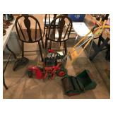 Jewelry, men’s and women’s watches, vintage seiko watches, vintage zenith watch, orvis chronograph, cadillac hood ornaments, model aircraft engines, pocket knives, pins, rayban sunglasses, tie clips, fishing lures, Hudson oil can, model airplane parts, 1940s Boy Scout handbook, watchmaking tools, camera equipment, Nikon D80, canon cameras Living room Borghese dining table with 6 chairs, large media cabinet, glass panel coffee table, curved floral sofas, lighthouse watercolor, Waterford crystal, China cabinet, blue fabric armchairs, Sony TV, Sony DVD and CD players, JVC VHS player, Panasonic dvd recorder player, VHS tapes, speakers, pottery vases, Hamilton mantle clock, stiffel brass lamps, heritage side tables, barrister winter scene oil painting, oil paintings, framed photographs Basement workshop Campbell hayfield 30 gallon compressor, craftsman bench grinder, antique toolboxes, technical manuals, American optical respirator, Stanley wood planes, craftsman handheld sanders, porter cable sander, ship porthole, jeweler’s desk, jeweler and watchmaking tools, rolling desk chairs, alarm clock, shop and desk lamps, granite-topped shop cart, pipe wrenches, filing cabinet, craftsman tool cabinets, craftsman workbenches, paper shredder, drafting table, watch winders, office supplies, staplers and staple guns, Kennedy tool cabinet, bostitch finishing nail gun, porter cable framing nail gun, industrial shop vac, drafting tools, bench vices, JVC boom box, machining tools, all American tool cabinet, air hose, extension cords, Sears sandblaster, hitachi drill, laser level, Rockwell delta drill press, three sided whetstone, craftsman lathe, hand tools, hammers, mallets, chisels, saws, WEN whetstone machine, delta belt and disk sander, AMT arbor press, duracraft wood lathe, Paige dual buffer, AMT scroll saw,blue electric buffer, delta wet/dry grindstone, delta Milwaukee disk sander, craftsman table saw with custom rollers, delta dust collector, clocks and clock parts, yellow and brown desk, dewalt dw705 tile saw, dehumidifiers, power drills, white iron floor lamp Basement living room Williams electric Union Pacific 3958, railking train cars and engines, Lionel train cars and engines, Lionel no 2484 illuminated passenger cars, Lionel no 2485, Lionel no 2483, Lionel no 2023T, vintage marklin locomotive parts, cast knight figurines, vintage marklin railroad track, vintage model kits, vintage remote control airplane kits, New Jersey trolly set, golf Abel 75th anniversary carousel, singer sewing machine in parts, remote control cars, carnival model kits, model p38 lightning, model supplies, railroad track segments various scales, railroad diorama, large railroad diorama table, vintage Raleigh sports bicycle, vintage Kenko bicycle, Schwinn airdyne, Nordic sport, kuempel grandfather clock in parts, mountain scene oil painting, computer desk and chair, barstools, rival food slicer, seltzer bottle, kettle, aquarium with accessories, ice grinder, ice bucket, vinyl records, cassette tapes, wall clock, lee Reynolds cyclist painting Basement storage rooms Suitcases, household cleaning products, plunger, Christmas decorations, swiffer, dust masks, painting supplies, golf clubs, vintage golf clubs, golf bags, golf ball picker, golf accessories, royal vacuum cleaner Kitchen Tile-top kitchen table with four chairs, small Samsung TVs, glassware, Crystal, Pyrex, vintage Pyrex, stepstool, coffee mugs, teapots, Hamilton beach blender, pans, dishes Bedroom Queen sized bed, Ethan Allen nightstands and dresser, brass table lamps, purses and wallets, wood and upholstery armchair Master bedroom Kindel carved dresser with mirror, kindel carved nightstands, full size bed, brass table Lamp, wall art, wedding dress, clothing, purses, shoes, men’s clothing Garage Glassware, vases, candles and candle holder, stuffed animals, hand tools, garden tools, books, umbrellas, picture frames, dining table and four chairs, steps tools, stepladders, handicapped assistance items, Christmas decorations, table fan, Regina carpet steamer, plant pots, wheelbarrow, hand dolly, grass seeder, gas cans, folding chairs, jack stands, clothing rack, gas edger, antique children’s lawnmower, glasses, coffee mugs, shovels, rakes, 55 gallon drum |