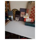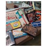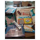 Games: Vintage Monopoly, Wood Pile, Light Bright, Rummy-O, Booby Trap, Concentration, Key Word, Cribbage, Scrabble, Bingo, Parcheesi, Trivial Pursuit, Dominoes, Horse Shoe, Puzzles, Darts