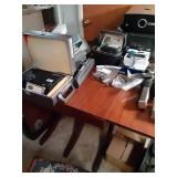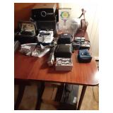 Cameras: Olympus A F zoom w/case, Polaroid w/accessories, Kodak disc 3600, Kodak disc 600, Bell & Howell Jaguar A F -1, Pocket instamatic, Sears Varizoom, Kodak Instamatic slide projector 8m, Sylvania Sun Gun movie light, Sawyers Rotomatic 707A slide projector, Polaroid S X 70 w/case, 8mm tower, Sears Electronic Flash, Kodak instamatic 300, Day Light projector screen, Tri Pod, Compo Photographic custom table