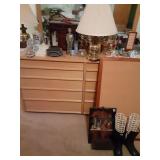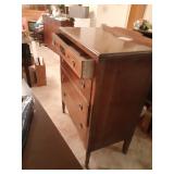 Furniture: Mahogany drop leaf dining table w/ 6 chairs, Wooden drop leaf desk, Bentwood rocker, Watertown Slide Dining table w/ leaves that make pullout dining table, 8 ft. upholstered couch. 2 upholstered recliners, Sectional wood trimmed couch, Mahogany drop leaf coffee table, wooden TV cabinet, Bed, Dressers, Lamp tables, Pictures, Floor Lamps, Mirrors, Drexel Birch 5 drawer dressers 2drawer nightstand, wooden cabinet, Birch hope chest w/ drawer, Colonial double headboard & footboard -9 Drawer dresser w/ hutch - 5drawer dresser & night stand, Folding room divider, upholstered chair,