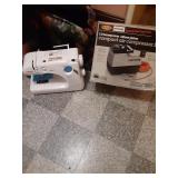 Electronics: Dirt Devil hand vacuum, Kirby Dual Sanitronic System vacuum, Hukuba push sweeper, Eureka mighty-mite vacuum, Vintage GE portable hairdryer in case, Realistic tape recorder, Janome portable sewing machine, portable radio in case