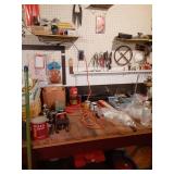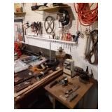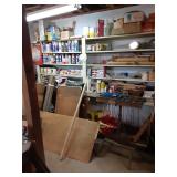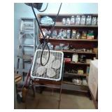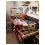 Garage: Men’s bike, Radio cart, Black & Decker 13” double edge electric hedge trimmer, Ryobi 18v 12” cordless trimmer, GBI 20 Weed Eater, Craftsman Edge Trimmer, Weed Whacker, Craftsman Dynamic Brake, Wood and metal bench, Hydromulic Floor Jack, Wood and metal ladders, Bob Sled, Gas cans, tools, lawn tools, Saw horses