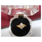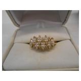 14 kt Gold Ring with Cluster Diamonds in a Marquise Shape, Approx ½ cttw