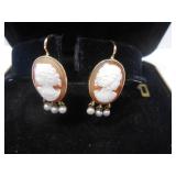 14 kt Gold and Cameo Earrings with Seed Pearls, 4.4 gr