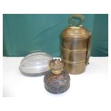 Brass Candlesticks, “Tom’s” Jar, Old Crocks, Antique Bottles