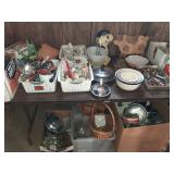 Unbelievable amount of christmas decorations, Large and small Annalee Santa and Mrs Santa dolls, Byers Choice Carolers dolls, over 40 wreathes, christmas trees, pointsettas, boxes of ornaments, Halloween and easter decorations.