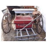 Antiques and items of interest to include: Cutter sleigh from a Dover NH manufacturer, 4 seat pung sleigh, 2 good vintage horse weathervanes, great painted cement lawn jockey, collection of sterling holoware, rail switch lock key from Portmouth, Earl English tall clock, mantle clocks, Great Falls & Conway Railroad, blue globe B & M Railroad lantern, New York Central lantern w/ no globe, 1924 unopened Dupont powder tin, Daisy #30 butter churn, excellent Victorian wicker baby carriage, Effanbee Doll, large lot of Hummel figurines and plates, Model Toys Heiliner pressed steel grader, Roseville Vase, Horse doorstop and bookends, several horse stall signs, Paris Manufacturing childs sled in original paint and stenciling, excellent Coca Cola Picnic cooler with insert, Original box 50th anniversary glasses Coca Cola Bottling plant Somersworth NH, Moxie bottle stopper, advertising thermometers,1930s rochester fair posters, collection of vintage glass perfumes, early tools inculding spoke shaves, draw knives, axes by Snow and Neilly and Underhill, early tool box, vintage kitchenware, jadite bowl, cut glass, depression glass and china. Excellent signed OOB of horse, three Sawyer, early hunt prints and Equestrian prints in Arts & Crafts frames, photos, great lots of local ephemera, early photos, cabinet cards, and tin types.