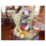 Includes: Vintage Blenko glass Brilliant Cut glass GE Refrigerator Tools Waterford Duchin Creation Weighted Sterling Candle Holders Steiff Collection Lladro Extensive Dept 56 Village Collection and accessories Dept 56 Graceland Mansion Kraft 50th Anniversary Pocket Watches Extensive Hummel collection Scrimshaw Whale Bone Walking Stick Timmy Woods handbag Baseball cards Baseball memorabilia Nardi Dallas Cowboys Helmet Lamp (new in box) Gorham Crystal Nativity Ridgeway Grandfather clock Lenox Mansfield China and stemware Gabbert’s Ralph Lauren Dining table and chairs Extensive Arthur Court collection Spode Christmas plates Henredon China Cabinet Norman Rockwell Figurines Extensive collection of cast iron cookware Gorham Franco Vintage Agfa camera Certified International Cannister set Piano Babies New Haven clock Company antique clock Beatrix Potter Chair gym Ladies size 14-18 clothes WW II Army items Lock T33 Serger Lawyer’s Bookcase Legos Vinyl albums Antique washstand (2) Oscar Meyer Ride-On Weinermobiles Byers Choice Carolers Anna Lee Vintage Lipton Iced Tea Dispenser Southern Living decorative items New boutique decorative items and gifts Fitz & Floyd Pier 1 Gurgle Pots Large collection of apricot Fiesta dinnerware Vintage Corning Ware never used Pyrex Hancock & Moore leather chair and ottoman Extensive Metlox Poppy Trail China (strawberry pattern) Some Coca-Cola items Craft items Extensive Christmas and Holiday items Tiffany Style swag lamp Lifetime folding tables Howard Miller clocks Sharp TV King Furs …and much more!
