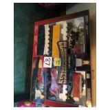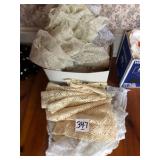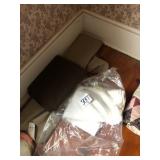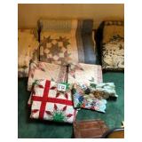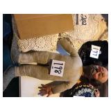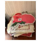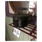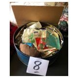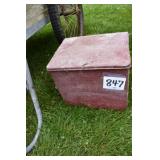 Beautiful hand stitched quilts, Hand stitched linens, 2- Wheel Horse mowers, Gas powered Log Splitter, Cast Frying Pans, Blue canning jars, regular canning jars, Runner sleds, Cast stove, Yard swing, Hess Trucks, Turtle back trunks, Victorian brackets, oil lamps, rail road lanterns, Galvanized buckets, sprinkle cans, wash tubs, Pile of wood, bird baths, yard ornaments,