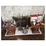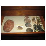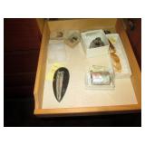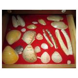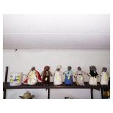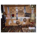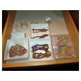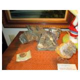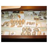 Living Room: Small collection of Lladro figurines, Ethnic: Newer Zuni Fetish Collection – artists include Barney Calavaza, Stewart Lasiloo, Al Lasiloo, Kent Bantea to name a few, Some Mata Ortiz Pottery, Owl Kachina. Small collection of Netsukes (made in China). African Fertility dolls. Lots of Mexican animals – very colorful.