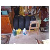 Back Room Shop: Cutting Machine for Rocks--Polishing Machine for Rocks--And the Rocks--Lots of Tools for Working on Rocks--Vintage Chairs--And Stuff