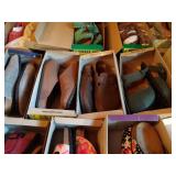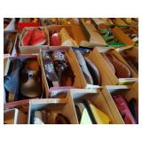 AND: OVER 100 PAIRS OF DESIGNER LADIES’ SHOES SIZE 8 -8.5 – MANY NEW IN BOX TO INCLUDE: BIRKENSTOCK, CLARK, BRADS, ALEGRA
