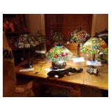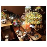 THIRTY (30) PIECE ORNATE AND COLORFUL TIFFANY STYLE LAMPS.