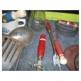 New 80 Volt Snow Blower, Weed Whacker and Chain Saw Combo, New 40 Volt Lawnmower, Vintage Toys, Lanterns, Electronics, and Cables, Dolls, Figurines, Hardware, Grill Mats, Kitchen Utensils and Appliances, 65 Years of View Master, Power Tools, Cordless Tools, Hand Tools, Chain Saws, Pole Saw, Blowers, Trimmers and More, Vintage Pottery including Roseville, Inverter, Bird Feeders, Flash Drives, Flooring, Adjustable Ladder, Canopies, Storage Tubs, Wire, Loads of Food, Cereal, BBQ Sauce, Marinade, Pecans, Food Storage, Hunting Stuff, Lap Top, Tablet, Ukulele, Beans, Large Regulator Clock, Grill Lighters, Edger, Angel Trumpet Plants, Tool Boxes. Air Compressors, Aluminum Ramps, Metal Bakers Rack, Torque Wrench, Gas Hose & Regulator, Heavy Straps, Sprayers, 409 Cleaner, Luggage, Shop Vacuum, Jewelry Holders, 12 Person Tent, Animal Water thing, Lock Box, Vintage Lanterns and Oil Lanterns, Die Cast Cars and Trucks, Die Cast Banks, Wood Trucks, Tile Cutters and Tile Saws, Tower Fan, Kids Slide, Wood Rocking Horse, Vases, Heater and Mini Air Conditioners, Hoover Carpet Cleaner, Ladies Clothes, Ramen, Mail Boxes, Light Fixtures, Paint Sprayers, Wire Nuts, Vintage Kitchen Utensils, Baby Rocker, Trunk, Canteens and Mess Kits, Mouse Killer, Large Servo Motors, Cake Pans, Boots and Shoes, Tall Trash Bags, and More, With Our Four for a Dollar / Free Tables Overloaded.