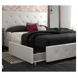 DHP Dakota Upholstered Faux Leather Platform Bed with Storage Drawers - Queen Size (White)(112)