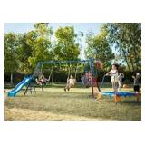 - Upper play: covered upper fort with built-in chalk board and mesh enclosed walls for added protection and clear line of sight for parents