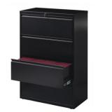 - 36" wide lateral file features four versatile drawers with hanging file rails for side-to-side filing in letter-size, legal-size or A4-size. Each drawer has a magnetic label holder for easy identification where you need it.