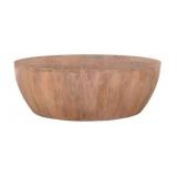36 in. Brown Medium Round Wood Coffee Table with Plank Design Base