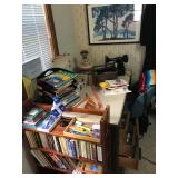 MISCELLANEOUS: TVs, cleaning supplies, luggage, CDs- modern and classical, beauty and hygiene products, vintage sewing machine Singer, sewing accessories and knitting, many useful household items