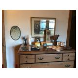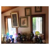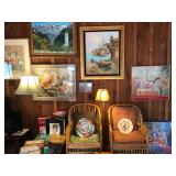 HOME DÉCOR AND FURNITURE: Lots of artwork, tile top table and chairs, bookshelves, furniture, two double beds and one king bed, mirrors, picture frames, and lamps