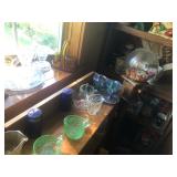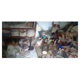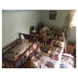 FURNITURE: (2) Large curio display cabinets, Oak kitchen set, Dressers, Antique washstand, Bookcase, Blanket chest, Drop leaf table, End table, coffee table and much more!