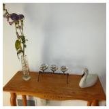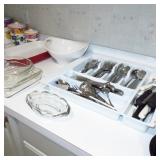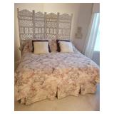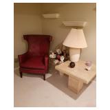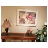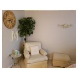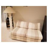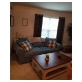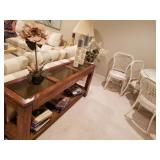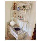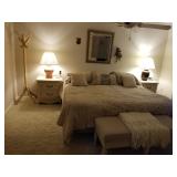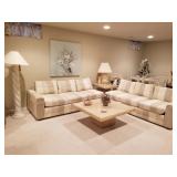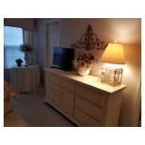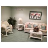 RETRO ROUND WHITE DINETTE W/FOUR CHAIRS FLORAL SOFA 3 PC SECTIONAL BLUE DENIM SOFA WHITE WICKER SOFA, ROCKING CHAIR AND TWO SIDE TABLES WHITE WICKER ROUND TABLE W/FOUR CHAIRS DINING ROOM TABLE W/SIX CHAIRS, CHINA CABINET & BUFFET TAN LEATHER RECLINER OVERSIZED BEIGE RECLINER STRIPED CHAIR & OTTOMAN ARTWORK KING SIZE BEDROOM OUTFIT QUEEN BED OCCASIONAL TABLES, LAMPS & CHAIRS AREA RUGS 42" FLAT SCREEN TV OFFICE DESK & CHAIR BAKERS RACK KITCHENWARE, GLASSWARE